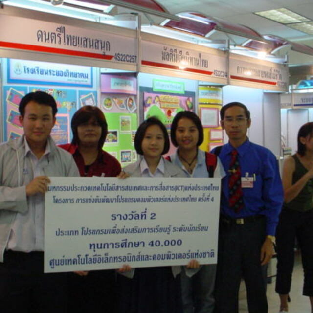 2545 | รางวัล รองชนะเลิศ โครงการแข่งขันพัฒนาโปรแกรมคอมพิวเตอร์แห่งประเทศไทย ครั้งที่ 4 ศูนย์เทคโนโลยีอิเล็กทรอนิกส์และคอมพิวเตอร์ แห่งชาติ โครงการ “ดนตรีไทยแสนสนุก” |